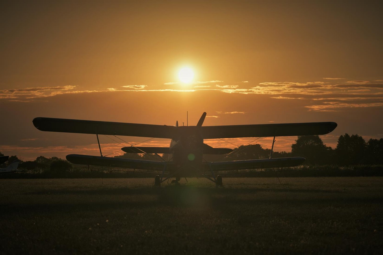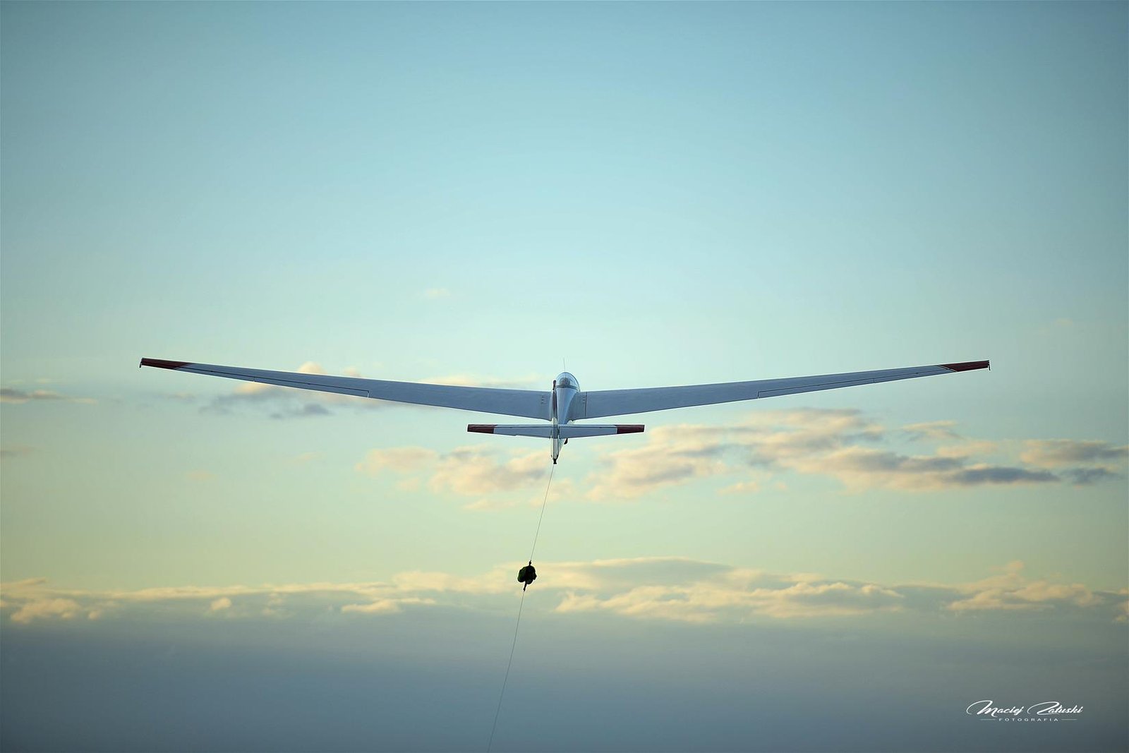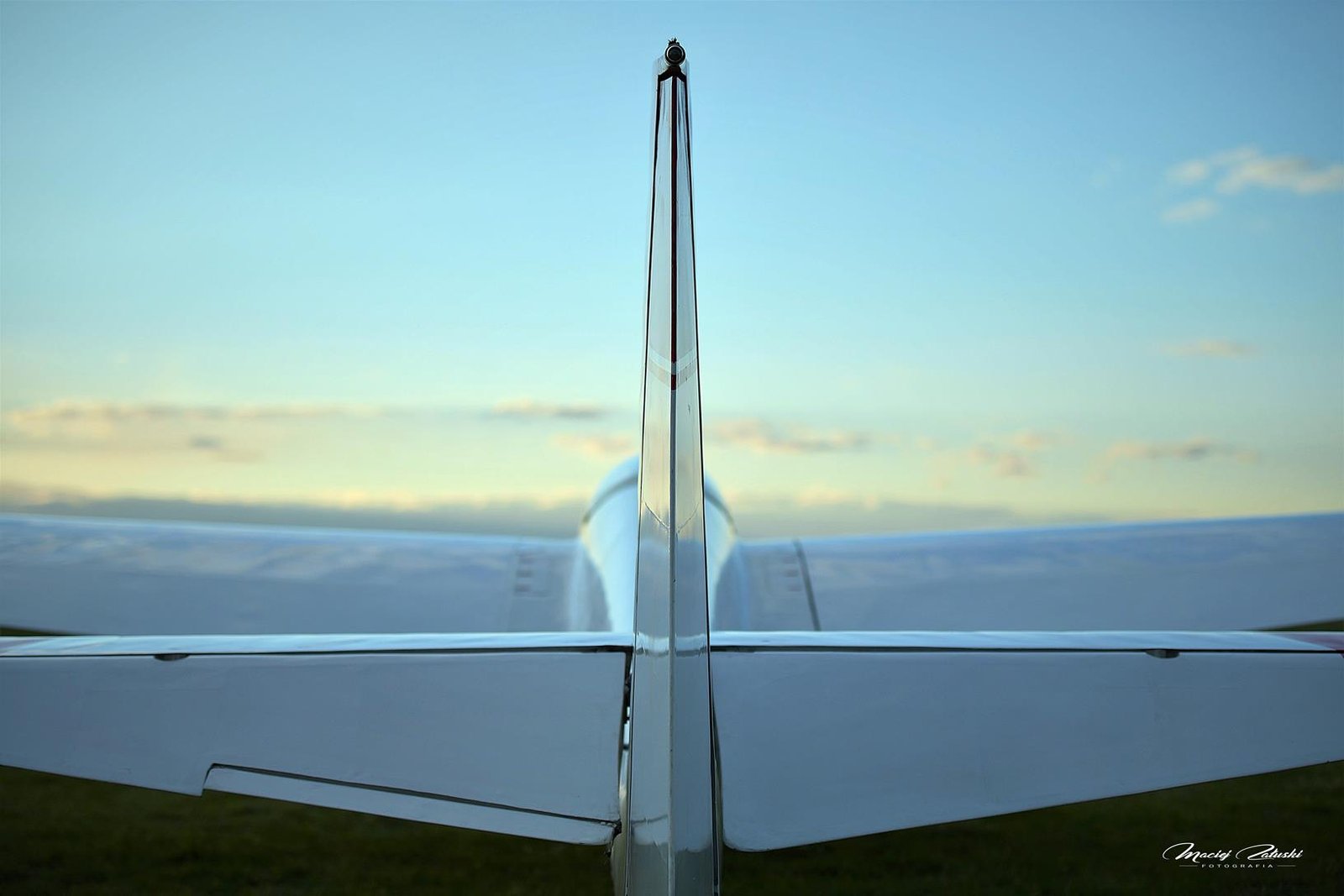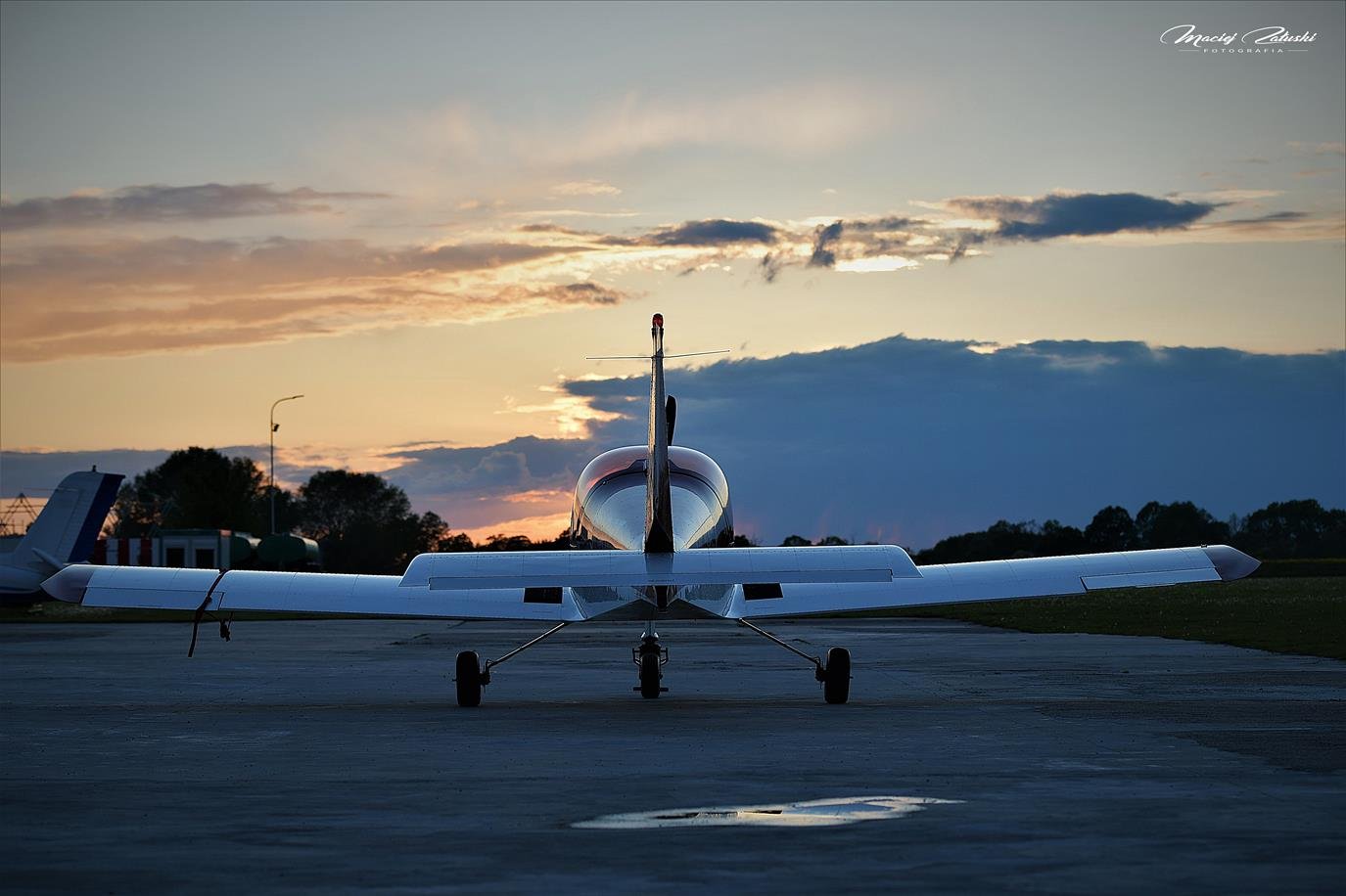 Lotnisko Szymanów, szybowce, samolot, zachód słońca.